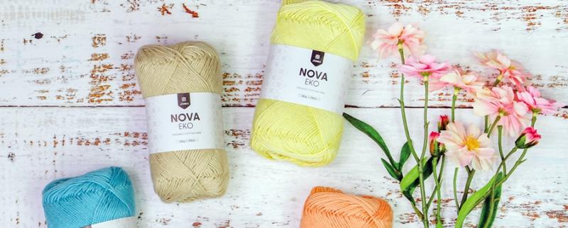 Nova Eko är vårt populära bomullsgarn Nova – nu helt ekologiskt. Detta garn passar perfekt till sköna vår- och sommarplagg. Garnet är gjort av 100% omerceriserad bomull, vilket gör det mjukt och lämpligt både som stick- och virkgarn. Med massvis av färger och designmöjligheter att välja bland kan vi nästan lova att du mött en framtida favorit!