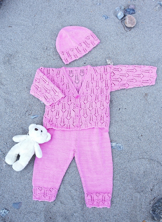 Babykofta, byxor och mössa