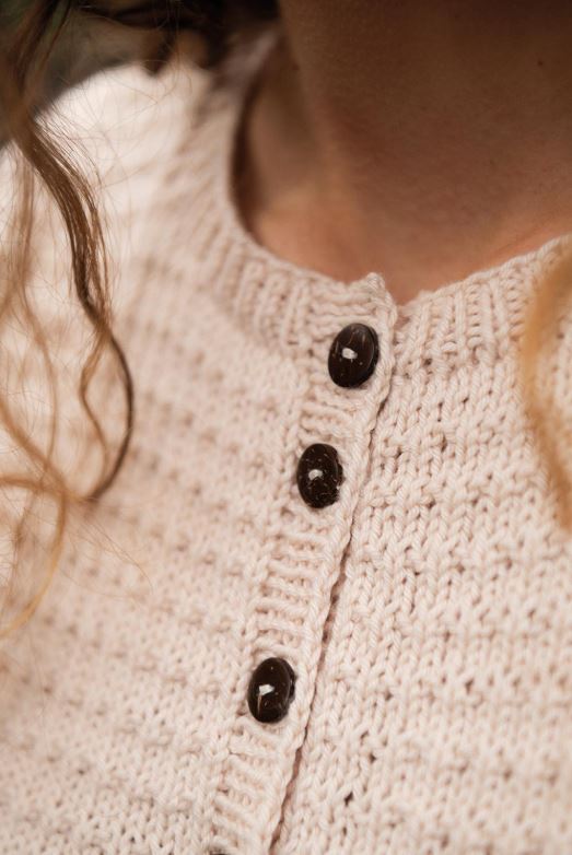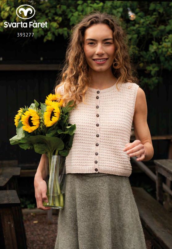 Toppen stickas fram och tillbaka, nedifrån och upp. Först stickas bålen, sen delas arbetet upp och fram- och bakstycke stickas klart var för sig. Sist plockas maskor upp runt arm, hals och knappkant där en resårkant stickas.