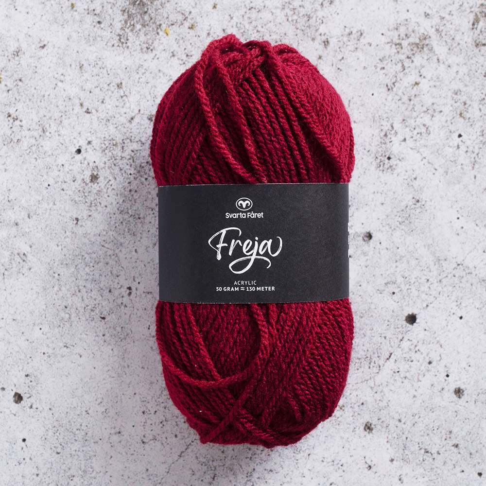 Vårt älskade Freja är ett mjukt och följsamt garn av 100% akryl. Garnet är lättstickat och passar lika bra till tröjor och koftor som sockor och vantar – både för vuxna och barn. Freja är upplagt på 50 grams nystan om 130 meter, och stickfastheten 20 maskor på stickor nr 4 ger 10 cm. Plagg som stickas med Freja tvättas i 40 graders maskintvätt. Med närmare 50 färger att välja bland är det bara kreativiteten som sätter gränser för vad du kan skapa med detta omtyckta garn.
