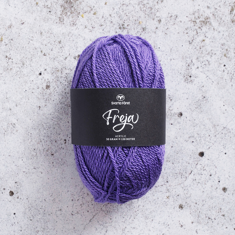 Vårt älskade Freja är ett mjukt och följsamt garn av 100% akryl. Garnet är lättstickat och passar lika bra till tröjor och koftor som sockor och vantar – både för vuxna och barn. Freja är upplagt på 50 grams nystan om 130 meter, och stickfastheten 20 maskor på stickor nr 4 ger 10 cm. Plagg som stickas med Freja tvättas i 40 graders maskintvätt. Med närmare 50 färger att välja bland är det bara kreativiteten som sätter gränser för vad du kan skapa med detta omtyckta garn.