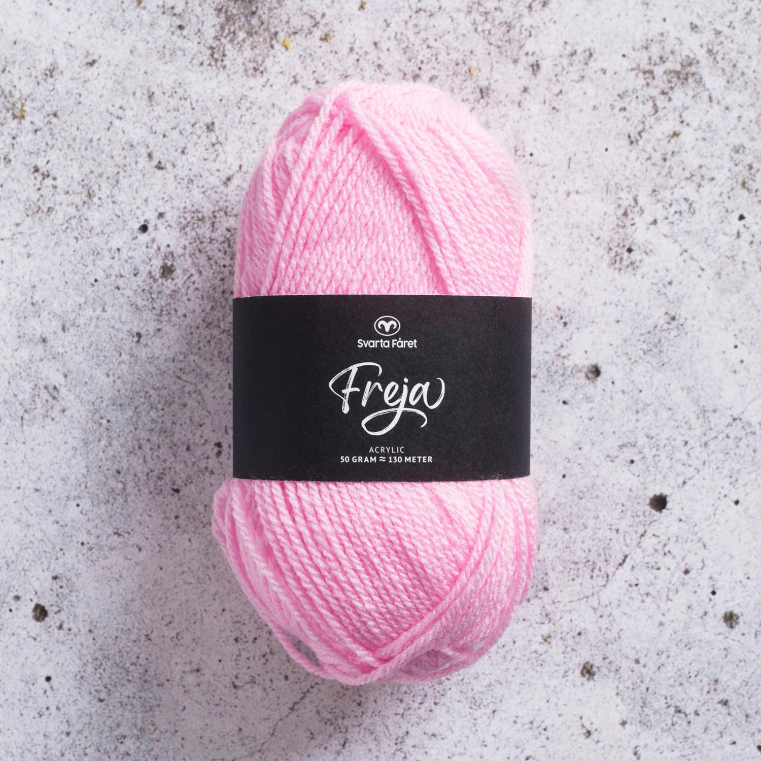 Vårt älskade Freja är ett mjukt och följsamt garn av 100% akryl. Garnet är lättstickat och passar lika bra till tröjor och koftor som sockor och vantar – både för vuxna och barn. Freja är upplagt på 50 grams nystan om 130 meter, och stickfastheten 20 maskor på stickor nr 4 ger 10 cm. Plagg som stickas med Freja tvättas i 40 graders maskintvätt. Med närmare 50 färger att välja bland är det bara kreativiteten som sätter gränser för vad du kan skapa med detta omtyckta garn.