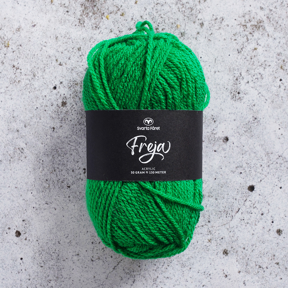 Vårt älskade Freja är ett mjukt och följsamt garn av 100% akryl. Garnet är lättstickat och passar lika bra till tröjor och koftor som sockor och vantar – både för vuxna och barn. Freja är upplagt på 50 grams nystan om 130 meter, och stickfastheten 20 maskor på stickor nr 4 ger 10 cm. Plagg som stickas med Freja tvättas i 40 graders maskintvätt. Med närmare 50 färger att välja bland är det bara kreativiteten som sätter gränser för vad du kan skapa med detta omtyckta garn.