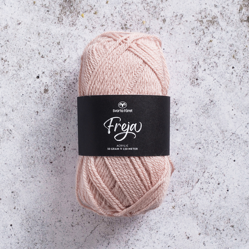 Vårt älskade Freja är ett mjukt och följsamt garn av 100% akryl. Garnet är lättstickat och passar lika bra till tröjor och koftor som sockor och vantar – både för vuxna och barn. Freja är upplagt på 50 grams nystan om 130 meter, och stickfastheten 20 maskor på stickor nr 4 ger 10 cm. Plagg som stickas med Freja tvättas i 40 graders maskintvätt. Med närmare 50 färger att välja bland är det bara kreativiteten som sätter gränser för vad du kan skapa med detta omtyckta garn.