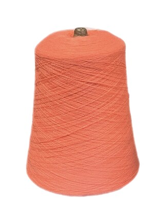 En kon med mycket fint garn i en mjuk laxrosa nyans. Den tunna grovleken gör garnet särskilt lämpligt för maskinstickning, vävning eller projekt där du vill arbeta med flera trådar tillsammans för att bygga upp struktur och stadga. Akryl är ett lättskött material som håller formen väl och ger ett jämnt resultat.