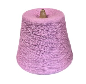 En kon med garntråd i en mjuk rosa nyans. Garnet passar utmärkt för maskinstickning, vävning och andra textila projekt där du vill ha en bra balans mellan mjukhet och slitstyrka. Blandningen av bomull och akryl ger ett lättskött garn med fint fall och god formstabilitet.