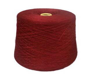 En rejäl kon med garntråd i en vinröd nyans. Perfekt för maskinstickning, vävning eller andra projekt där du vill ha ett mjukt, slitstarkt och lättskött garn.