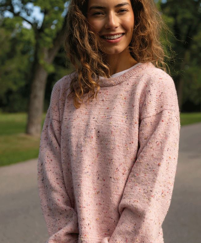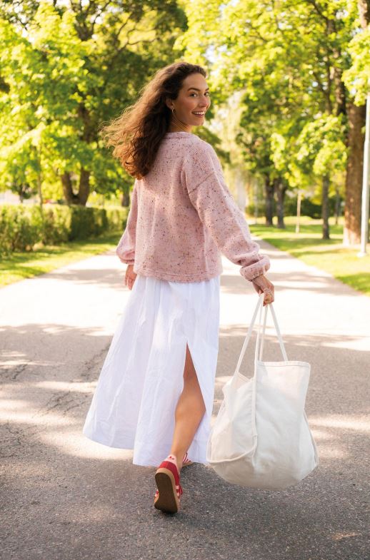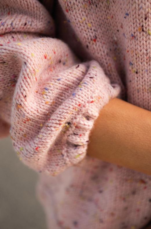 En härlig baströja med en twist. Ärmsluten har ett resårband vilket ger en uppdaterad look, samtidigt som tröjans minimalistiska detaljer låter garnet skina!