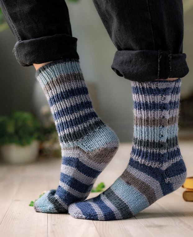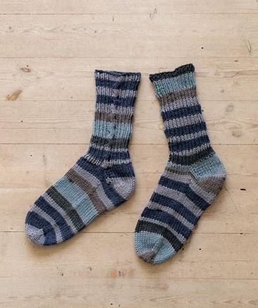 Dessa mjuka raggsockor pryds av flätor på utsidan av skaftet – lika snirkliga som Abbes sockerkringlor. Sockorna stickas från tån och uppåt med en klassisk häl för tå-uppsocka. Sockerkringla passar både för dam och herr!