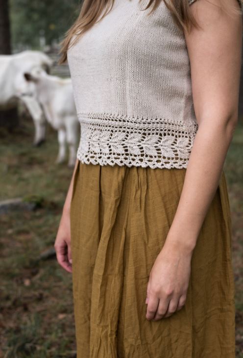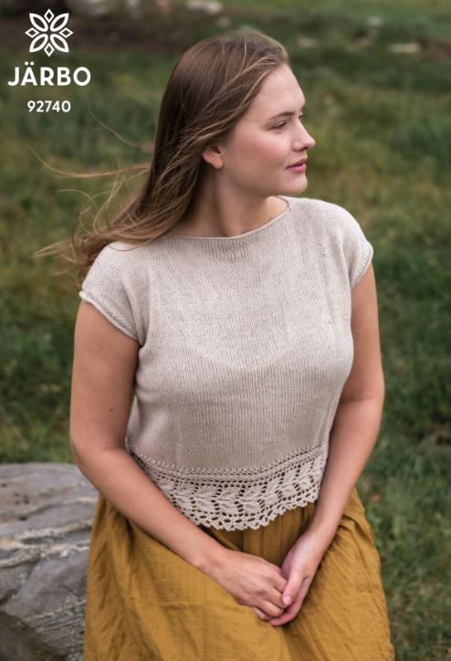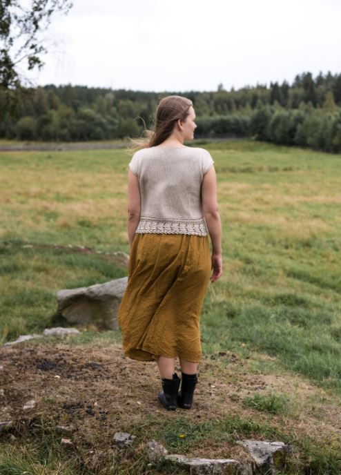En visa består av toner och ett stickat plagg av maskor. Sätt i gång med den här enkla och lättstickade toppen – och du är snabbt redo för sommaren! Toppen påbörjas med en tillfällig uppläggning och stickas i rundstickning nerifrån och uppåt. Arbetet avslutas med en spetskant i nederkanten.