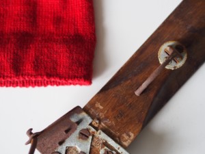 Material: 80-100 gram röd Mellanraggi, rundsticka 2,5 mm (40 cm), strumpstickor 2,5 mm.
