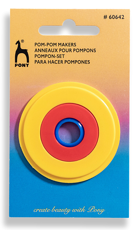 Tre stycken pom pom-mallar i plast.