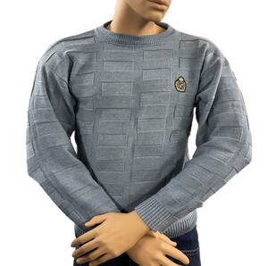 En stilren stickad tröja med diskret strukturmönster i form av rektanglar som ger plagget ett levande men ändå tidlöst uttryck. Tröjan har rund hals och ribbade muddar vid ärmar och nederkant för en bekväm passform.