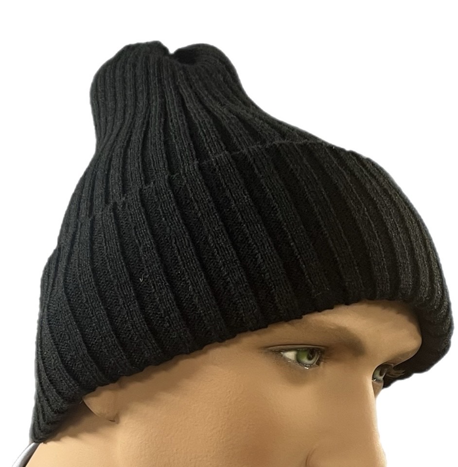 En svart ribbstickad mössa i 50% ull och 50% akryl. Tjock och varm modell som sitter bekvämt på huvudet och håller dig skyddad under kalla dagar. Perfekt för både vardag och utomhusaktiviteter vintertid.