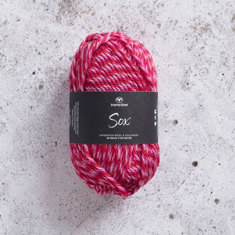 Sox från Svarta Fåret är ett klassiskt sockgarn i en slitstark och värmande blandning av ull och polyamid. Precis som namnet indikerar är detta det perfekta garnet när du vill sticka sköna sockor till hela familjen. Sox finns i enfärgat, melerat, slingat. Välj och vraka, skapa din egen kollektion av raggsockor!