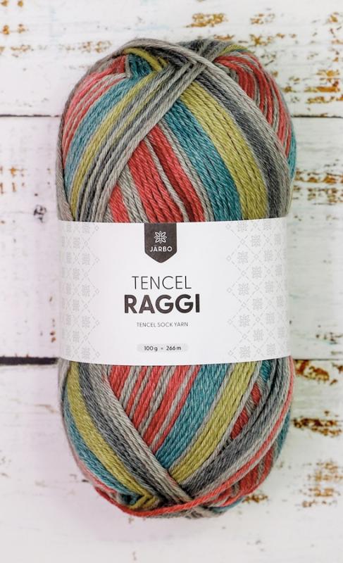 Glansigt, smidigt och helt naturligt! Järbos sockgarn Tencel Raggi består av obehandlad ull och tencel (eller lyocell), en spännande fiber som utfinns ur FSC-certifierad cellulosa från snabbt växande energiskog. Med detta mjuka och fina sockgarn stickar du framtidens sockor som både är snälla mot miljön, slitstarka och väldigt snygga. Tencel Raggi kommer i 16 färger: hälften solida och hälften printfärgade.
