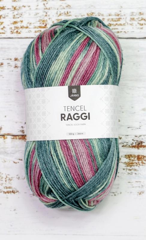 Glansigt, smidigt och helt naturligt! Järbos sockgarn Tencel Raggi består av obehandlad ull och tencel (eller lyocell), en spännande fiber som utfinns ur FSC-certifierad cellulosa från snabbt växande energiskog. Med detta mjuka och fina sockgarn stickar du framtidens sockor som både är snälla mot miljön, slitstarka och väldigt snygga. Tencel Raggi kommer i 16 färger: hälften solida och hälften printfärgade.