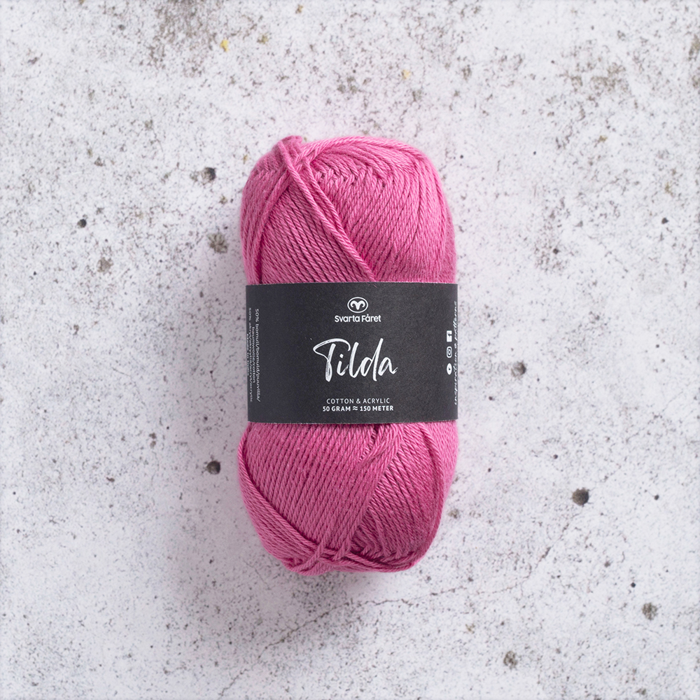 Vårt älskade Tilda är ett härligt blandgarn av 50% bomull och 50% akryl. Detta omtyckta garn är både mjukt och slitstarkt, och passar lika bra till stickning som virkning – både för plagg och interiör. Tilda är upplagt på 50 grams nystan om 150 meter, och stickfastheten 26 maskor på stickor nr 3.5 ger 10 cm. Plagg som stickas eller virkas med Tilda tvättas i 40 graders maskintvätt. Med över 60 färger att välja bland är det bara fantasin som sätter gränser för vad du kan skapa med detta älskade garn.