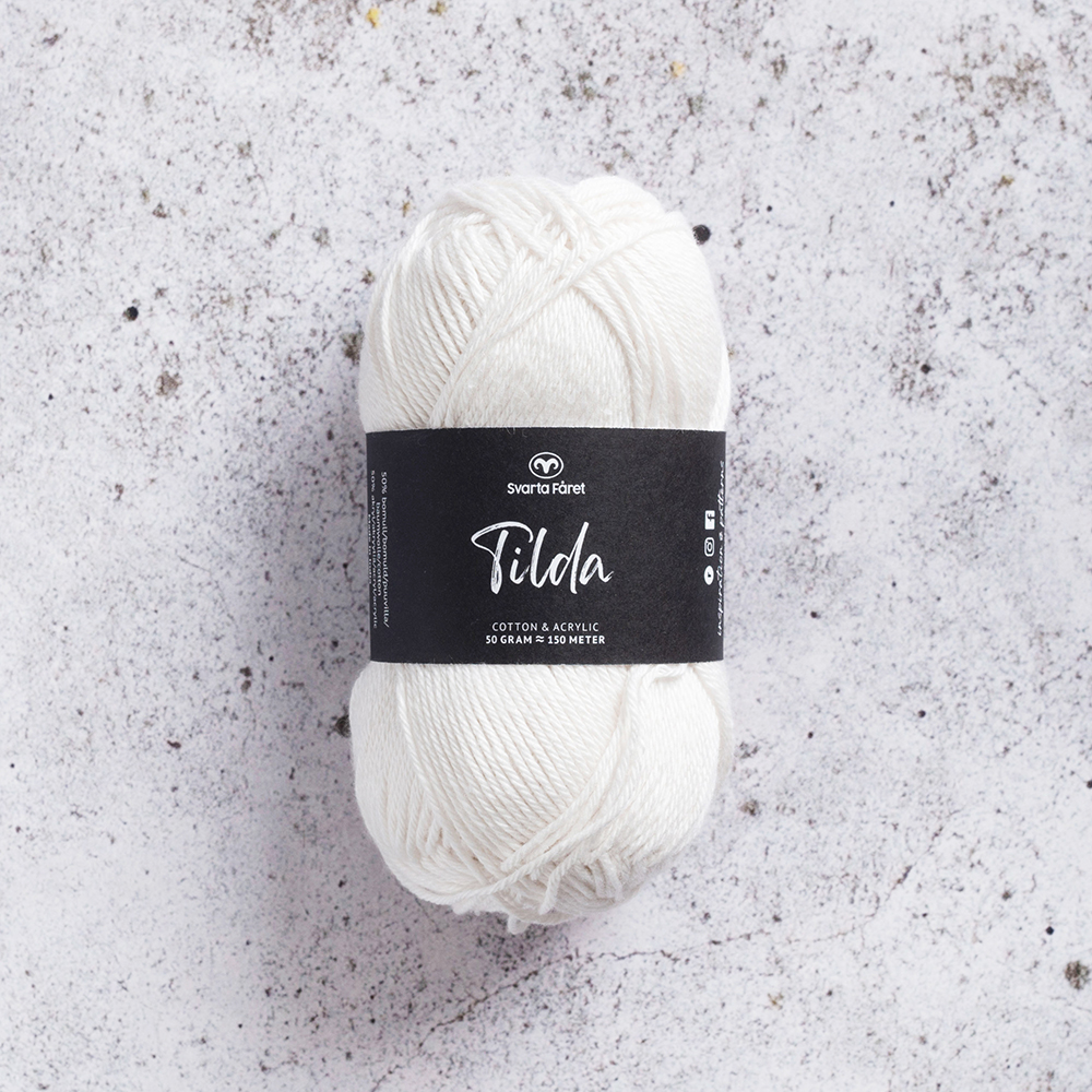 Vårt älskade Tilda är ett härligt blandgarn av 50% bomull och 50% akryl. Detta omtyckta garn är både mjukt och slitstarkt, och passar lika bra till stickning som virkning – både för plagg och interiör. Tilda är upplagt på 50 grams nystan om 150 meter, och stickfastheten 26 maskor på stickor nr 3.5 ger 10 cm. Plagg som stickas eller virkas med Tilda tvättas i 40 graders maskintvätt. Med över 60 färger att välja bland är det bara fantasin som sätter gränser för vad du kan skapa med detta älskade garn.