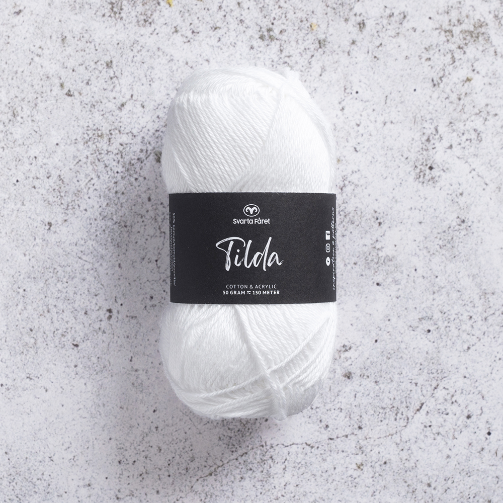 Vårt älskade Tilda är ett härligt blandgarn av 50% bomull och 50% akryl. Detta omtyckta garn är både mjukt och slitstarkt, och passar lika bra till stickning som virkning – både för plagg och interiör. Tilda är upplagt på 50 grams nystan om 150 meter, och stickfastheten 26 maskor på stickor nr 3.5 ger 10 cm. Plagg som stickas eller virkas med Tilda tvättas i 40 graders maskintvätt. Med över 60 färger att välja bland är det bara fantasin som sätter gränser för vad du kan skapa med detta älskade garn.